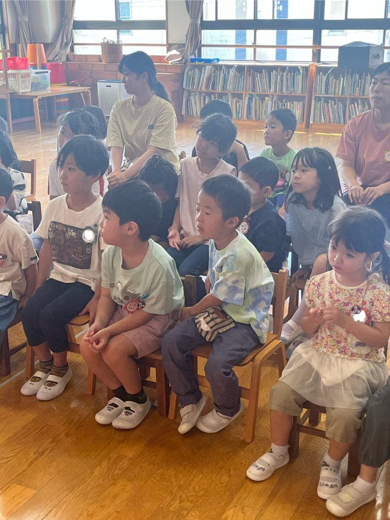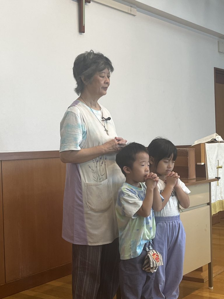 神様が、自分勝手すぎる人間をお怒りになって、唯一正しい心を持つノアと1対の動物や昆虫は救い、40日雨を降らせ、洪水を起こしました。その話を真剣に聞いていた子どもたち。神様はもうこんなことはしないと約束してくださったのですが、神様の怒りも相当だったのではないかと思います。