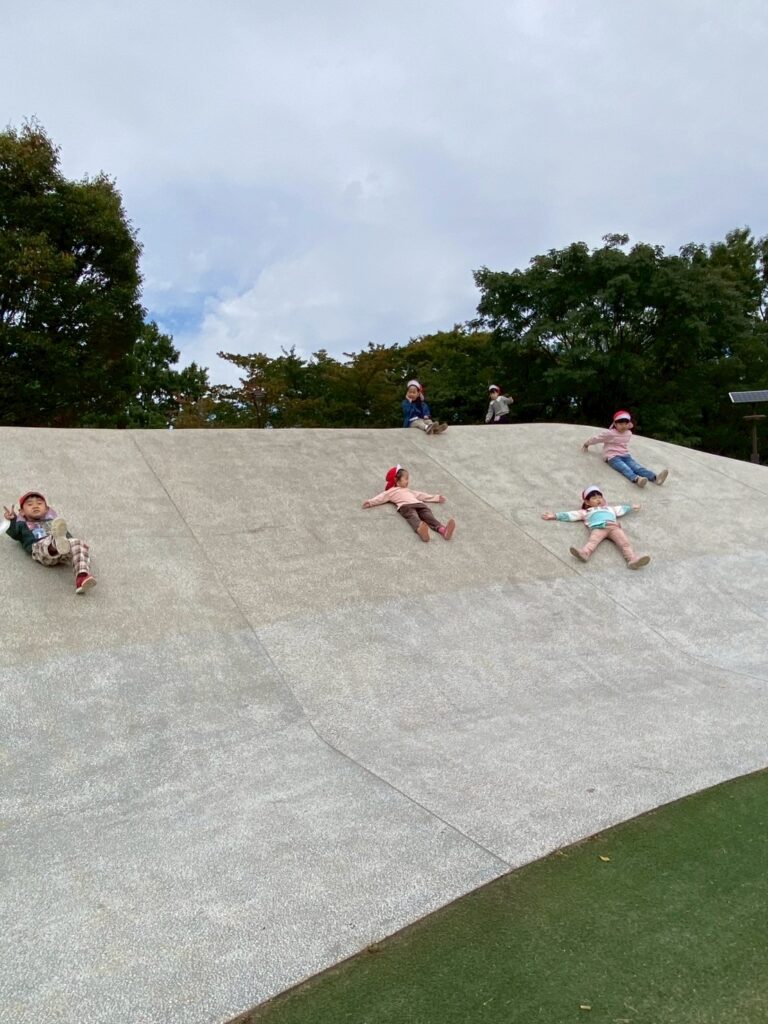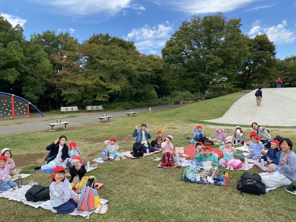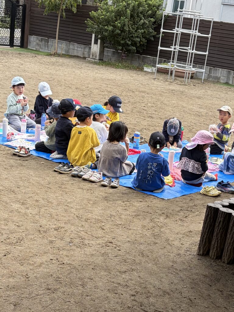 今日は年中児が電車に乗って遠足に行きました。ダイナミックに遊ぶことができて楽しかったようです。園庭では、再来週に遠足を控えている年少児が園庭でお弁当を食べました。ピクニック気分でとても嬉しそうでした。