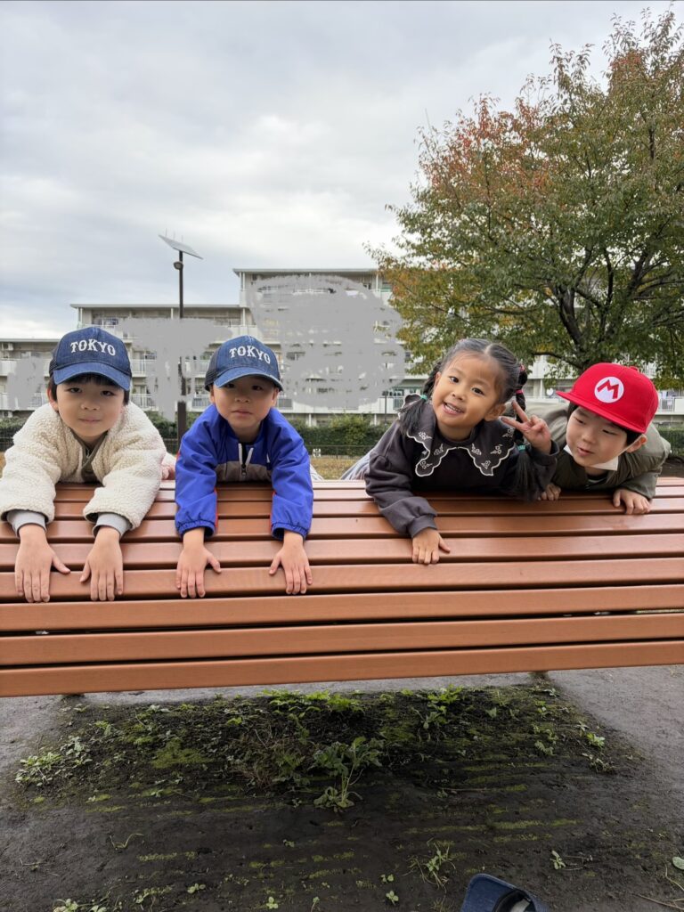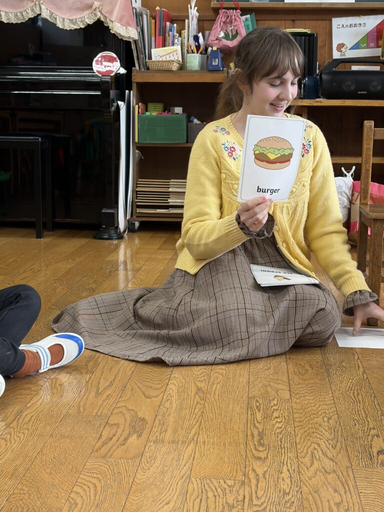 英語遊びの合間に遊びや活動 を楽しむ姿もありました。今日の英語遊びは、食べ物。年少児は発音がいいことを褒められました。年中児は、「hungry」を覚えたようです。年長児は、「I like~」か「I don’t like~」、「healthy」か「unhelthy」に考えて分けることもしました。来月歌う、「We wish you a merry christmas!」を歌いました。これから歌っていこうと思います。
