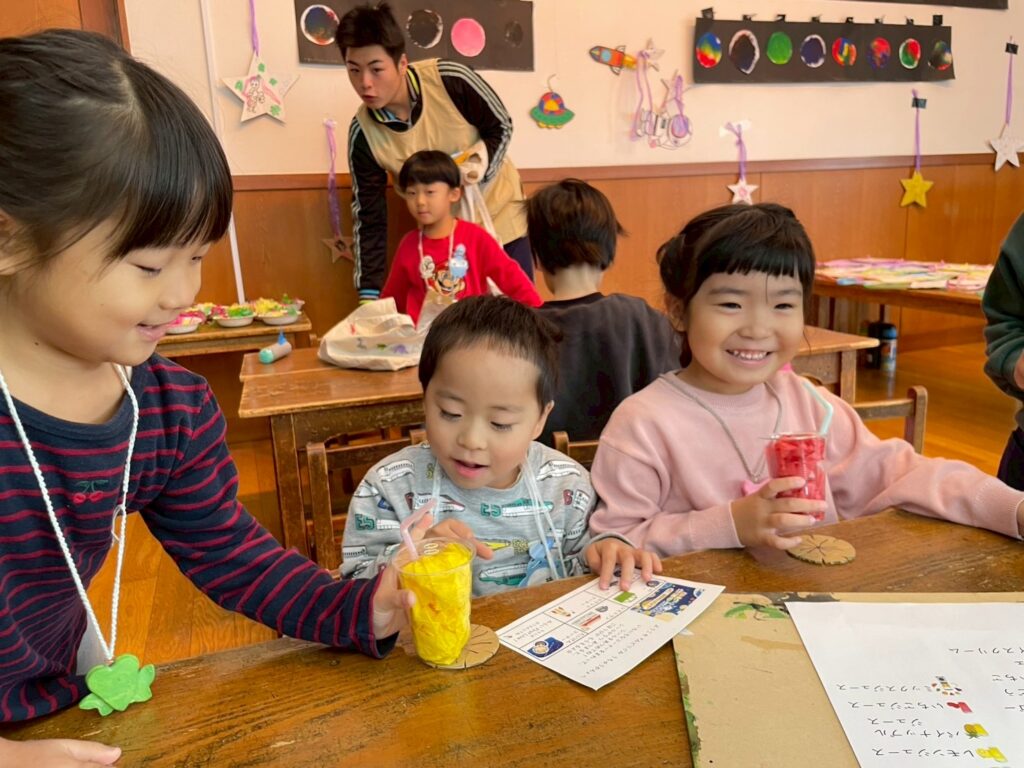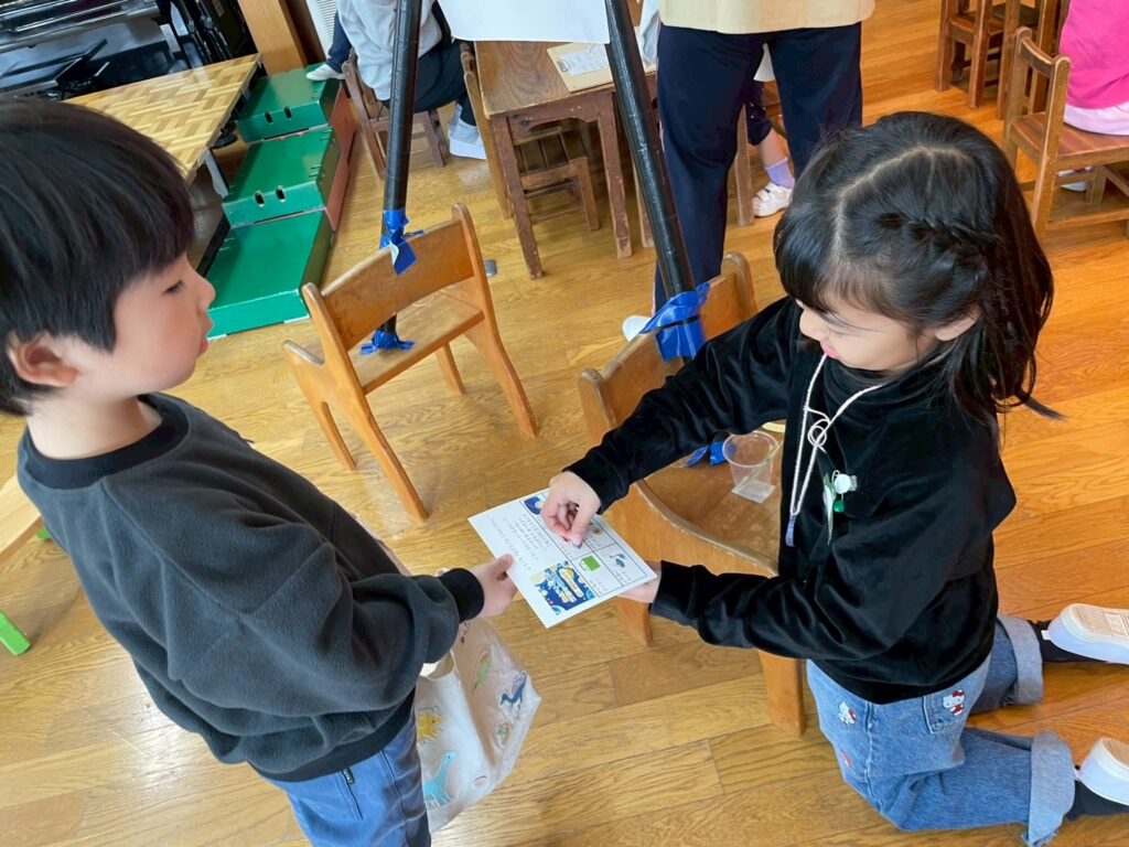 今日は、緑組が準備を進めてきたごっこ遊び「みどりぐみうちゅうかん」の開催日でした。年少・年中児の他に近隣のピノキオ幼児舎の年長さんもお招きして、大盛況でした。「楽しかった!」の声をいっぱいいただき、子どもたちも満足した1日となりました。
