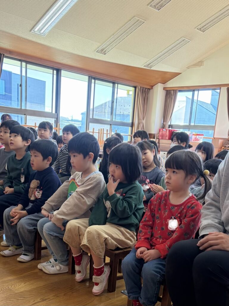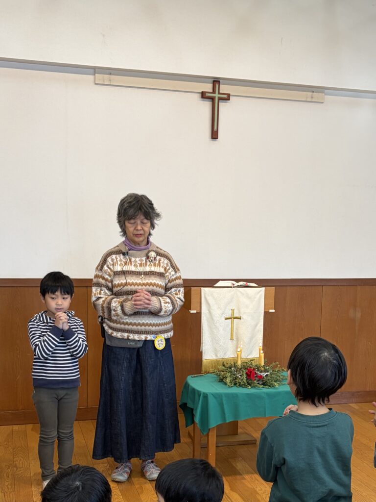 礼拝後は、セントニコラスさんの話をしました。「誘拐されそうになったら?」「大切なものを持ち歩くときは?」「悪いことをしたら?」のポーズを伝え、一緒にやってみました。冬休み、外出も多いと思うので、事件事故にあわないように祈っています。今週はもも組のクリスマス会。各クラスで考えて、出し物をします。楽しみですね。