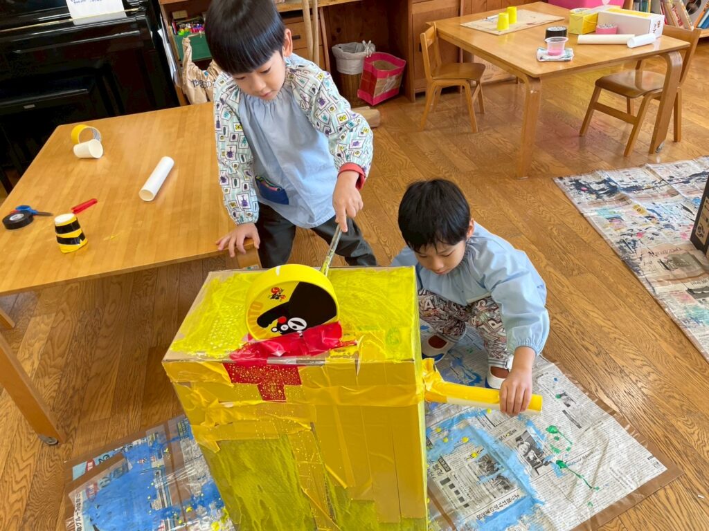 今日は、年長児の図書の貸し出しの仕方を年中児が見学に行きました。来週の水曜日は年中児が初めて絵本を借りに行きます。年長児が節分制作を始めました。昨日、どんな鬼を作るか決めて、今日は集中して鬼作りに取り組んでいました。まさか、一日でこんなに進むとは!みんなどんな鬼に変身するのか、節分の日が楽しみです。