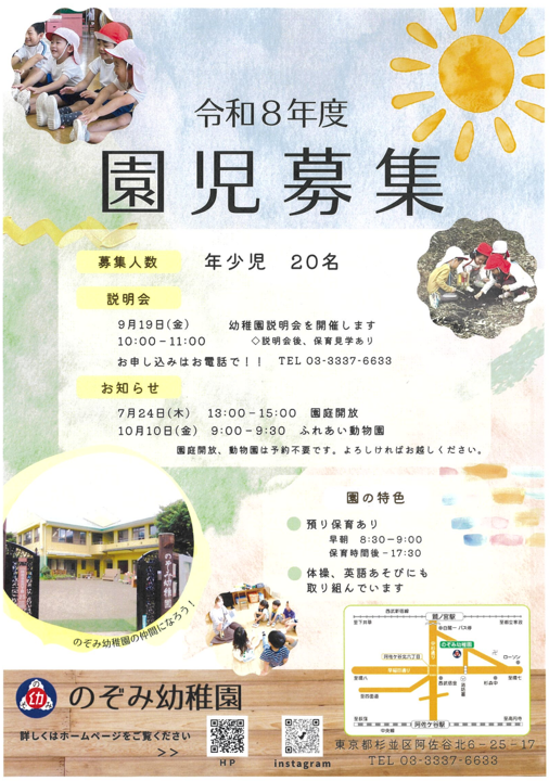 ※実施日はホームページや幼稚園掲示板等でお知らせいたします